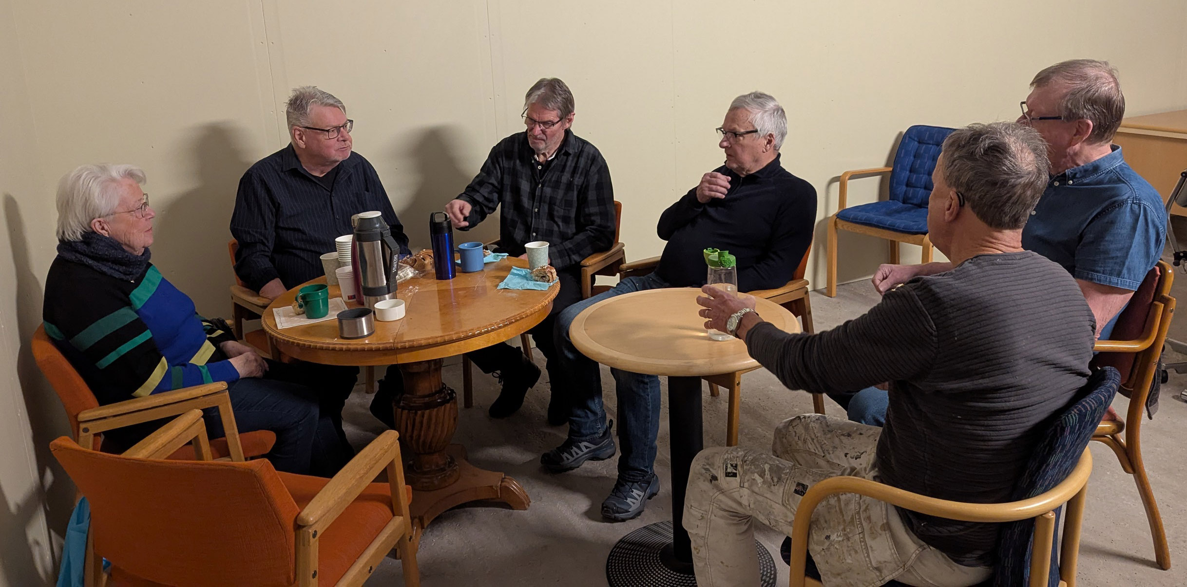 Så var det dags för provfika i det nygjorda konferensrummet. Solveig, Mikael, Bengt, Conny, Jan-Erik och Lennart fann