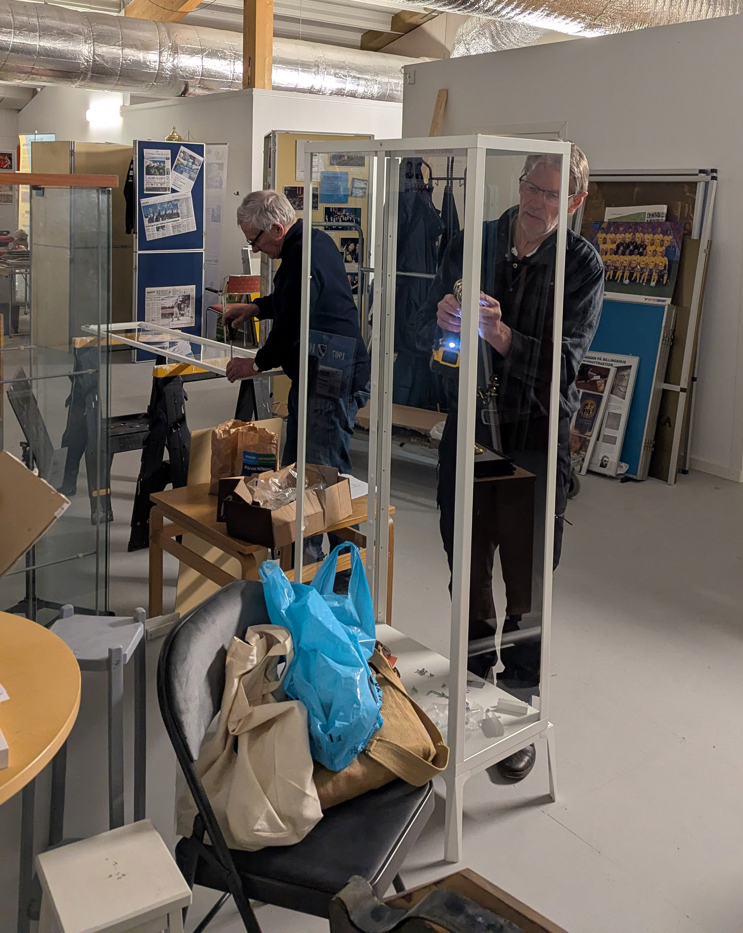Vitrinskåpen, ja, de är småluriga att sätta ihop med alla smådelar, märkte Conny och Bengt.